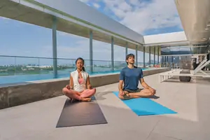 - Prática de yoga no amanhecer com sound healing;