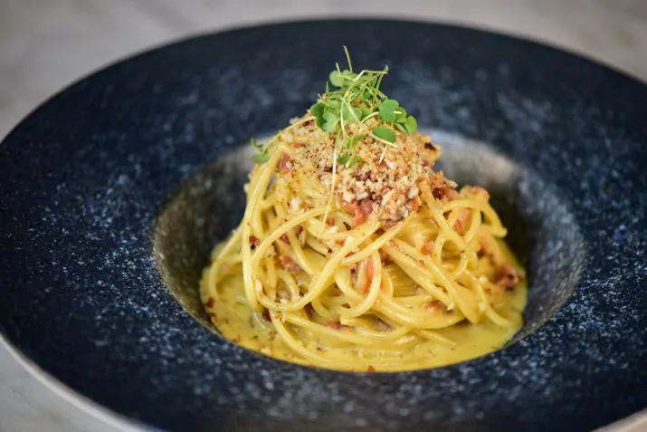 Variedade de bruschettas e estação ao vivo com massas frescas preparadas na hora, acompanhados por uma seleção especial de vinhos.