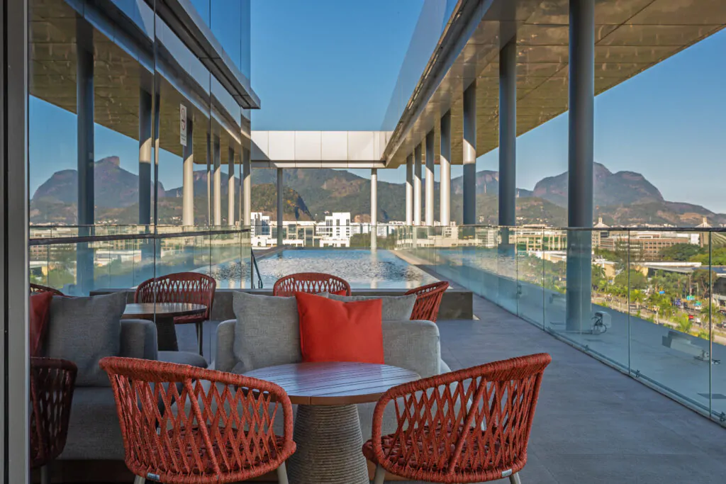 Aproveite a piscina climatizada e jacuzzi com as melhores vistas da Barra da Tijuca, todos os dias das 08h às 21h.